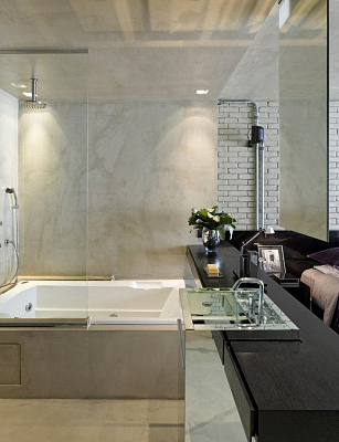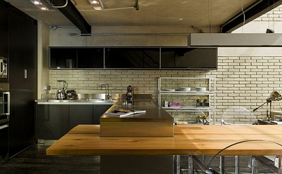 Черные и серые оттенки в интерьере лофта подчеркивают его мужественную сторону, в то время как легкая светлая отделка формируют комфортную базу. Индустриальный характер помещения преднамеренно подчеркнут, однако не доминирует, резиденция вовсе не кажется бездушной. На первом этаже расположена гостиная зона, объединенная с кухней и столовой, в то время как второй этаж является более приватным и представлен спальней, ванной комнатой и гардеробной.