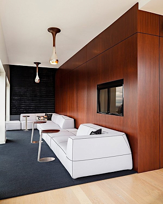 Столы и стена из искусственного меха была также работой совместного сотрудничества между Maven Interiors и Made Inc.