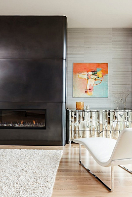 Камин в спальне является примером вдумчивого использования декоративных материалов.