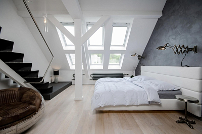Современная мансарда в палитре серого в Праге