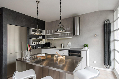 Эти шикарные апартаменты на верхних этажах в Ostrovského (Прага, Чешская Республика) обладают интерьером с мужским характером. Дизайн разработан студией OOOOX. Мансарда оформлена в индустриальном стиле с использованием различных оттенков серого цвета, который отражает современность и изысканность вкуса.