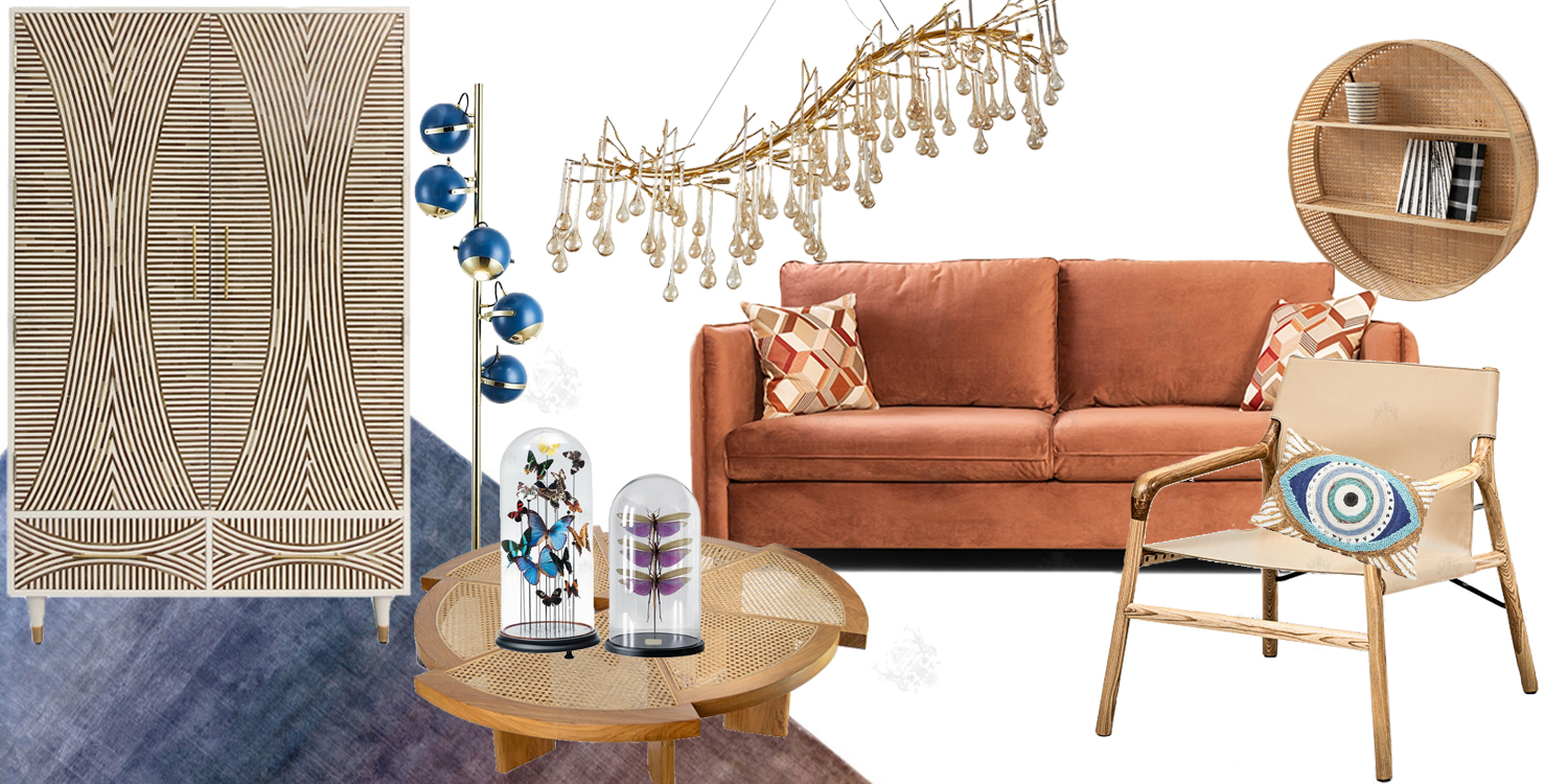 На этой неделе предлагаем идею для гостиной, в которой легко расслабиться и хорошо отдохнуть. Уютные плавные линии создают атмосферу комфорта и спокойствия, которой порой так не хватает в нашей повседневной жизни. По стилистике интерьер получится эклектичным: здесь есть и элементы бохо, и модерна, и этнического стиля.