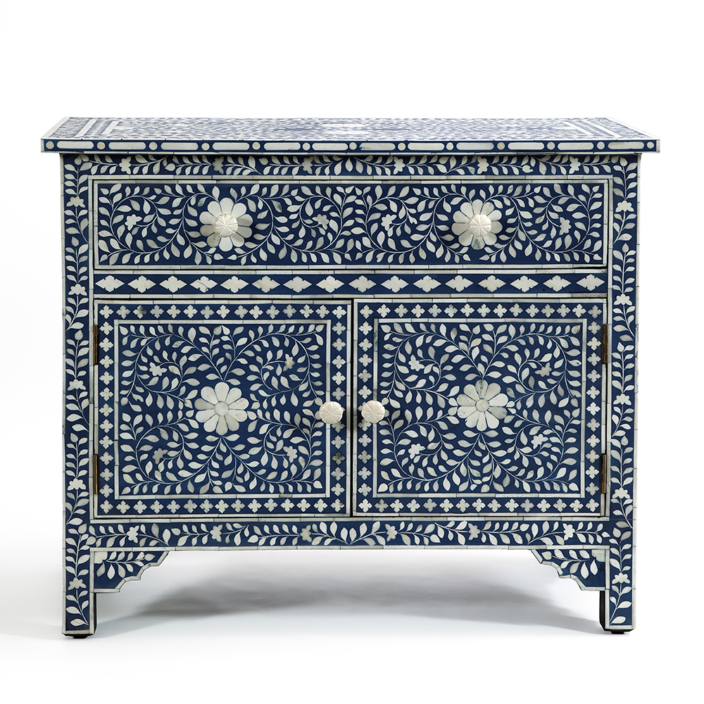 Купить комод инкрустация костью ORIENTAL Indian синий орнамент – это выбрать модель из натурального дерева, оформленную в восточном или индийском стиле.