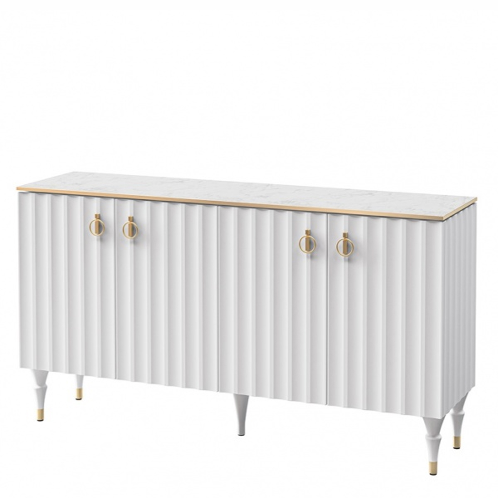 Консоль четырёхдверная с белым рельефным фасадом Expanses of Beauty Белый Золотой Белый Мрамор Bianco в Барнауле | Loft Concept