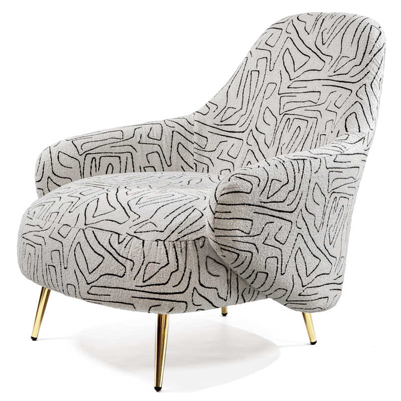 Кресло мягкое с принтом на золотистых ножках Onlooker Черно-белый Золотой в Барнауле | Loft Concept