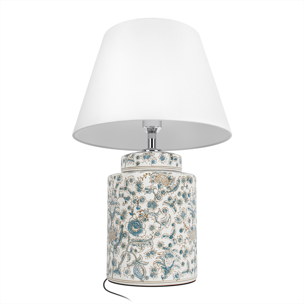 Настольная лампа цилиндрическая с цветочной росписью Lamp Flower Painting Белый Синий в Барнауле | Loft Concept