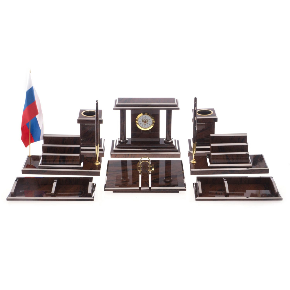 Комплектация: Часы - 1 шт, подставка под перекидной календарь - 1 шт, настольная визитница с ручкой - 2 шт, карандашница - 2 шт, лоток для скрепок - 2 шт.