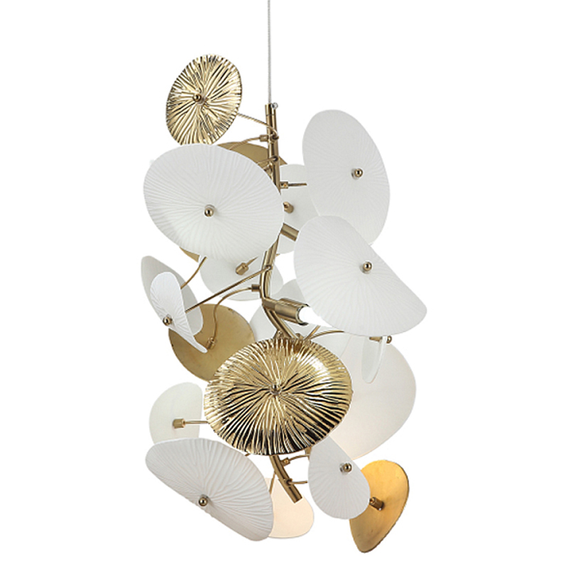 Подвесной светильник с белыми и золотистыми цветами Dahlia Flowers Lamp Латунь Белый в Барнауле | Loft Concept