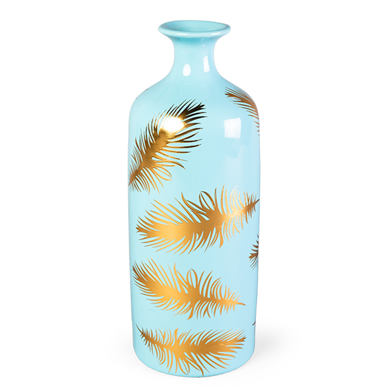 Ваза Gold feathers on blue Vase 30 Голубой Глянцевое золото в Барнауле | Loft Concept